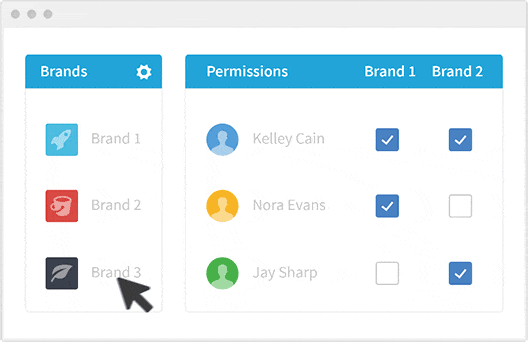 Coordinate your marketing with team members and manage multiple brand profiles for different clients with permission settings.